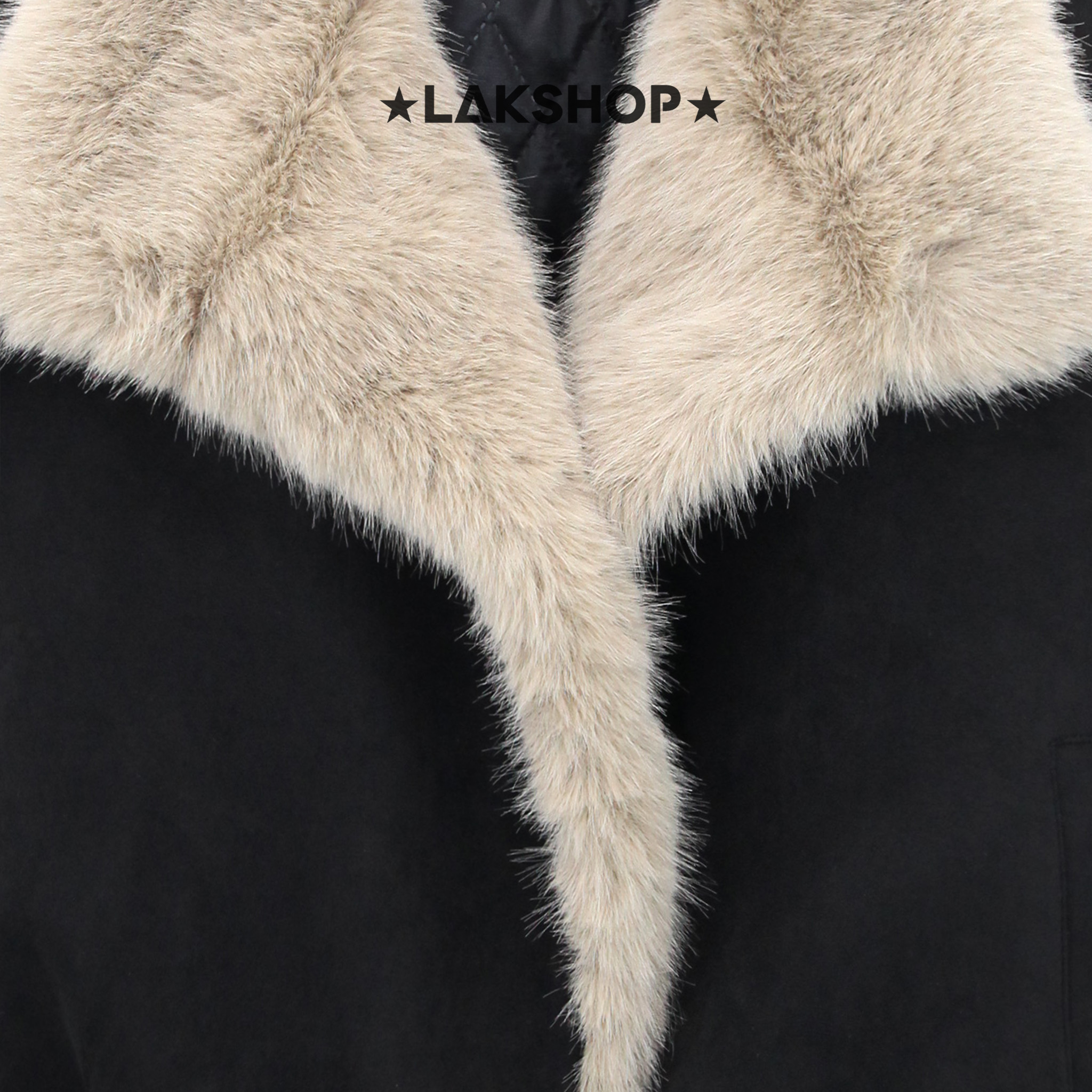 Áo Black Suede with Fur Collar Jacket
