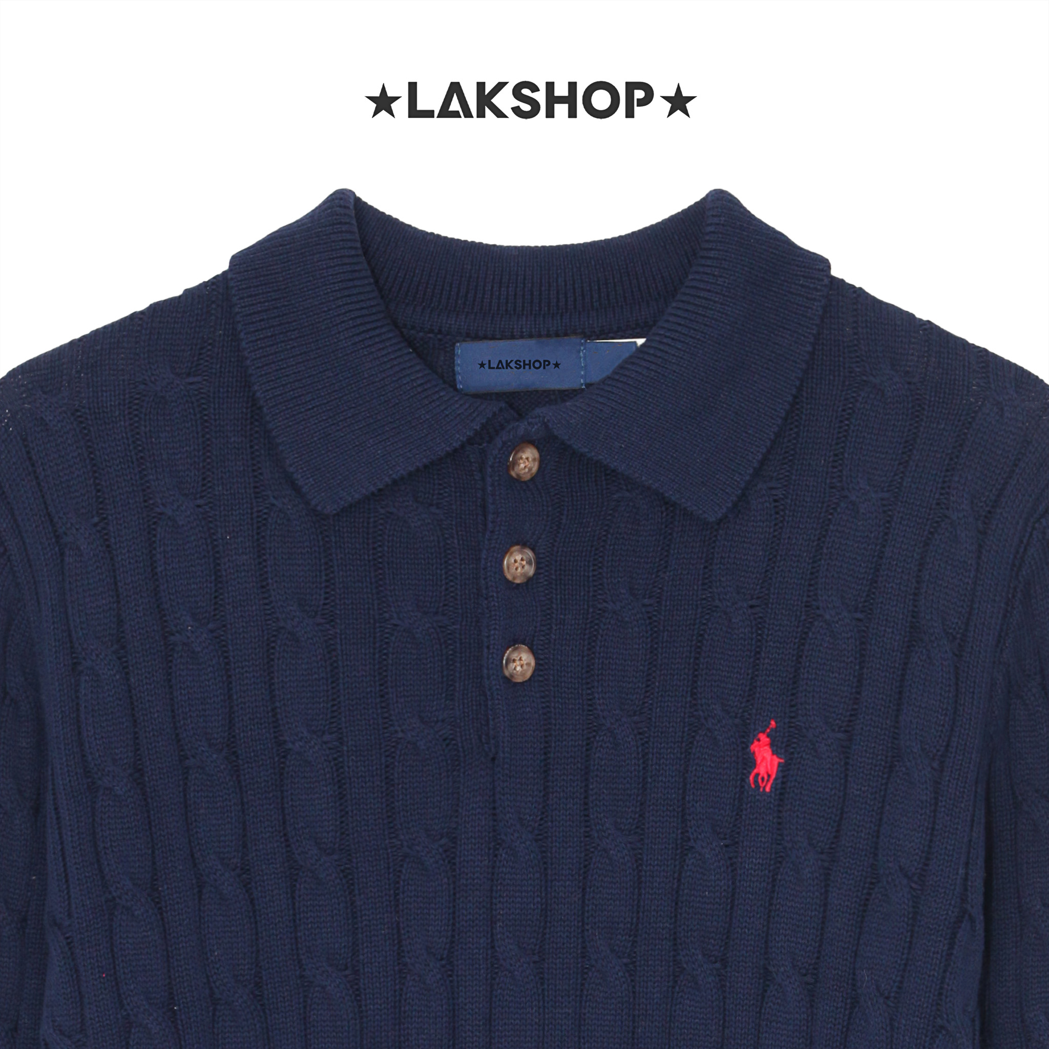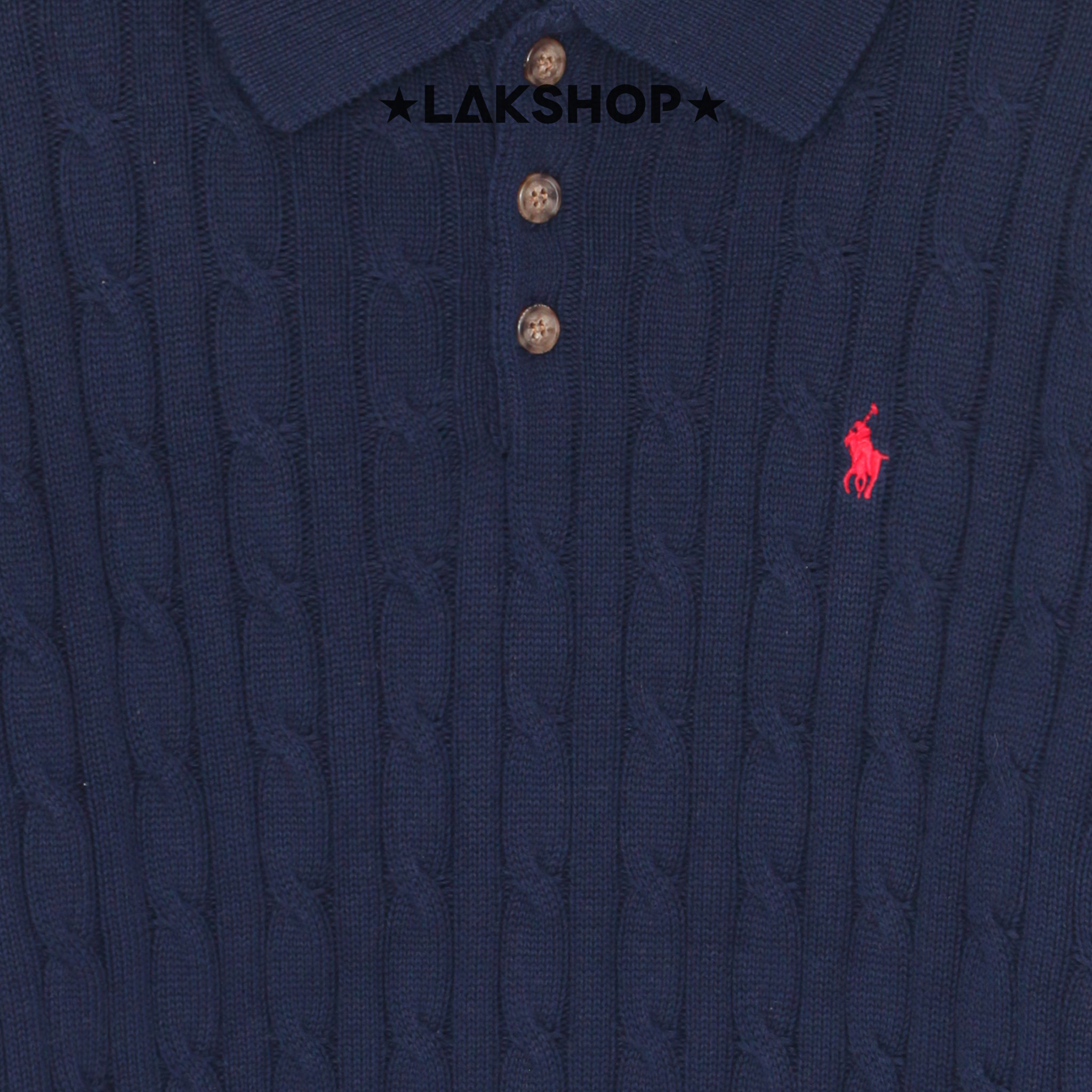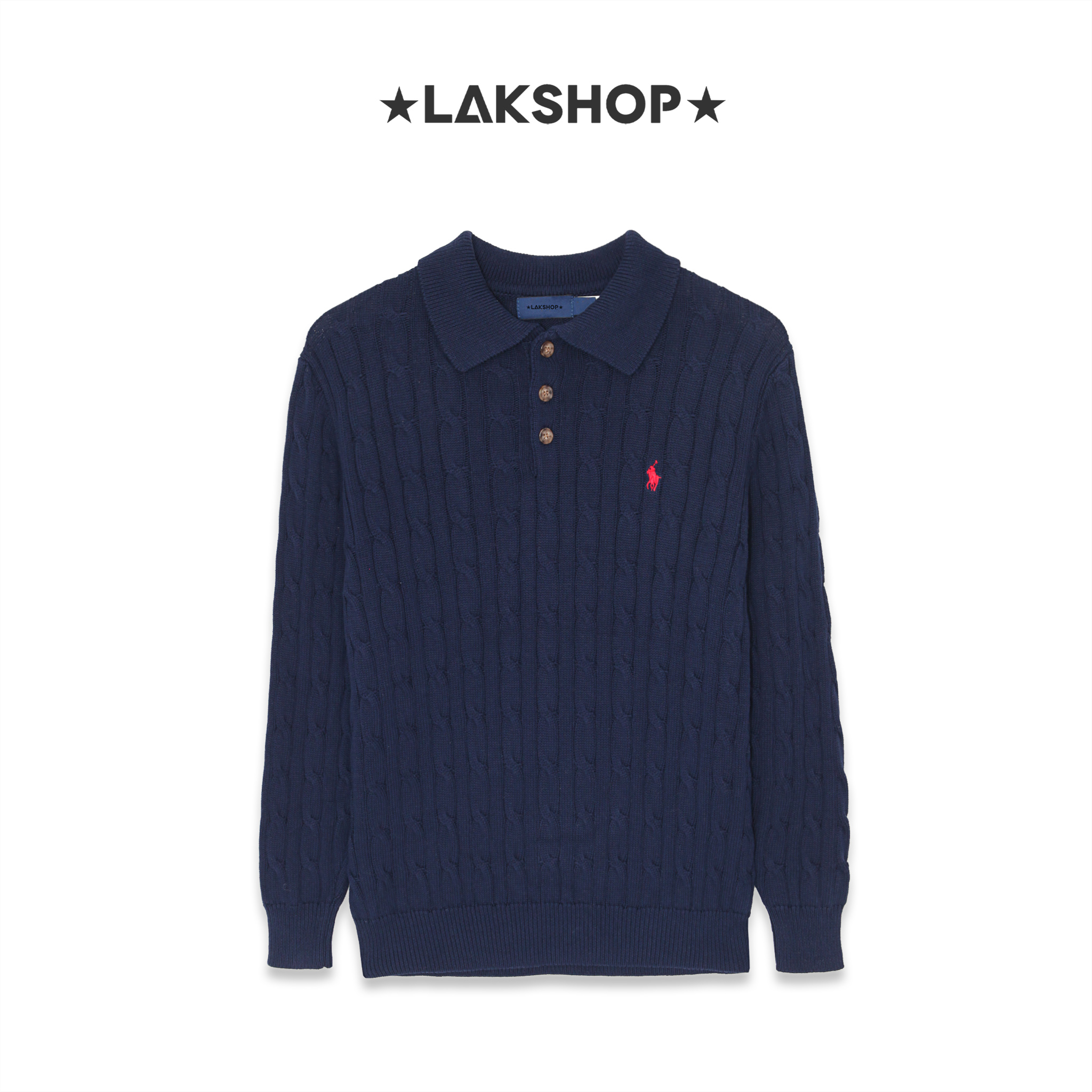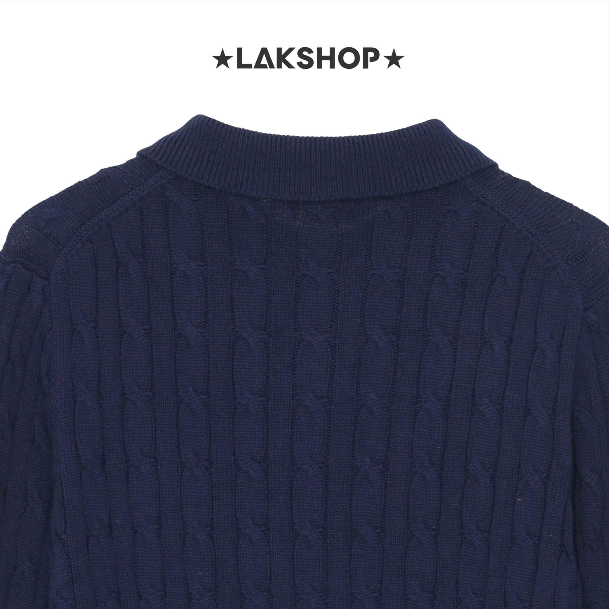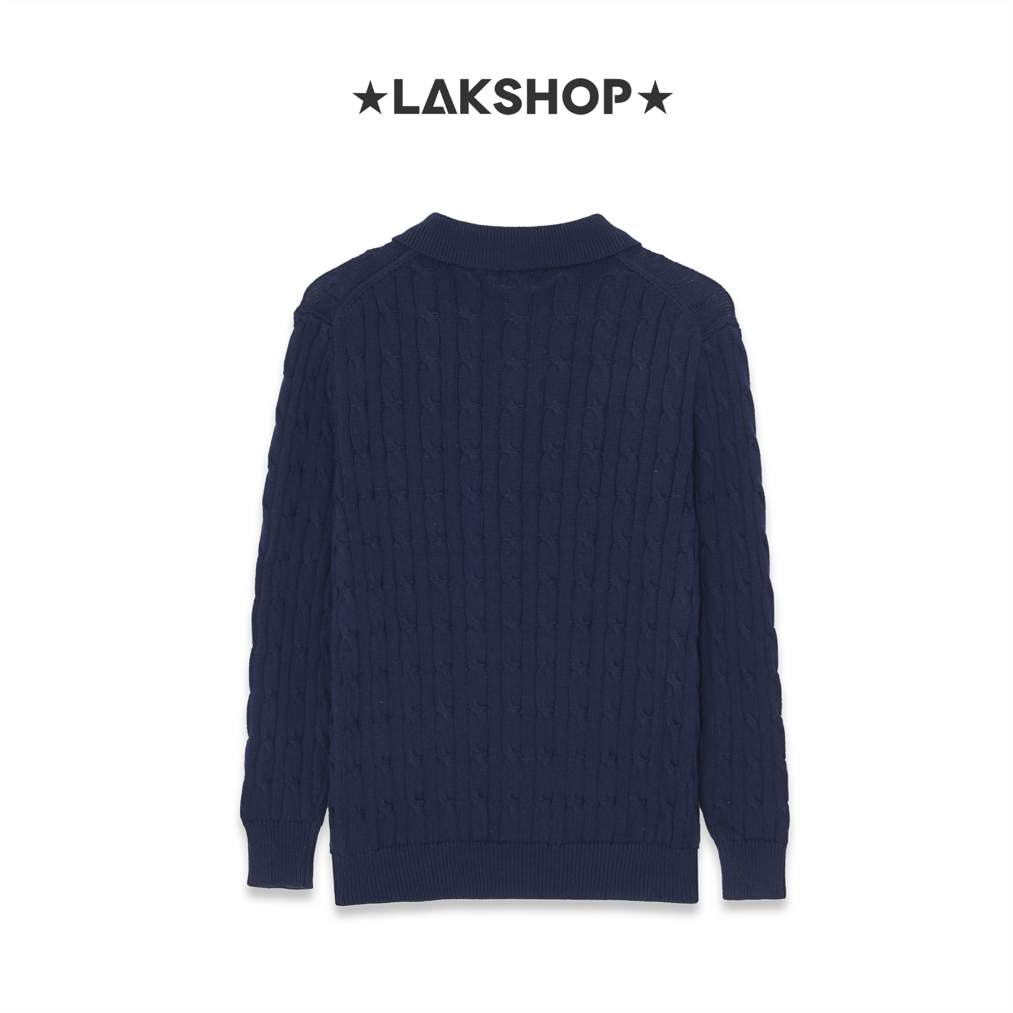 Áo R.L Navy Cable-Knit Long-Sleeve Polo Sweater