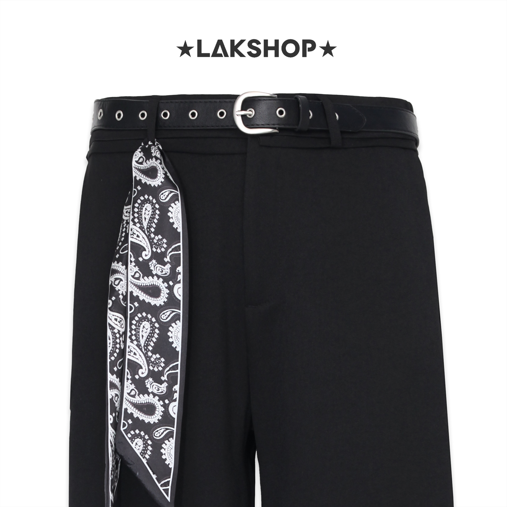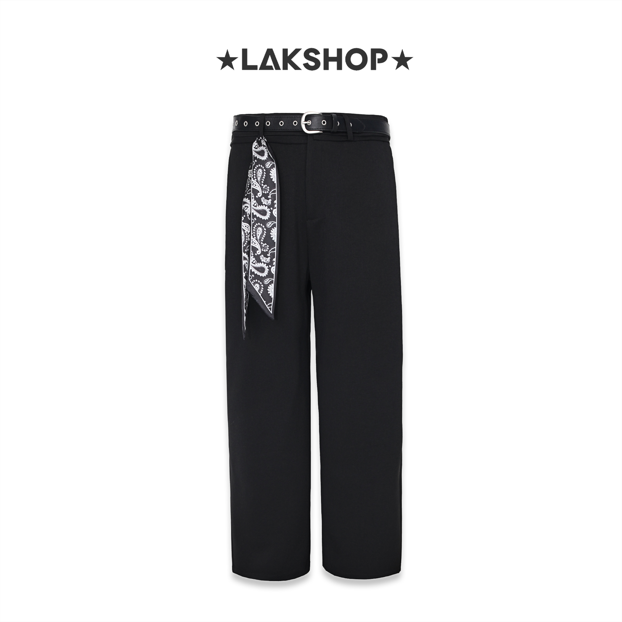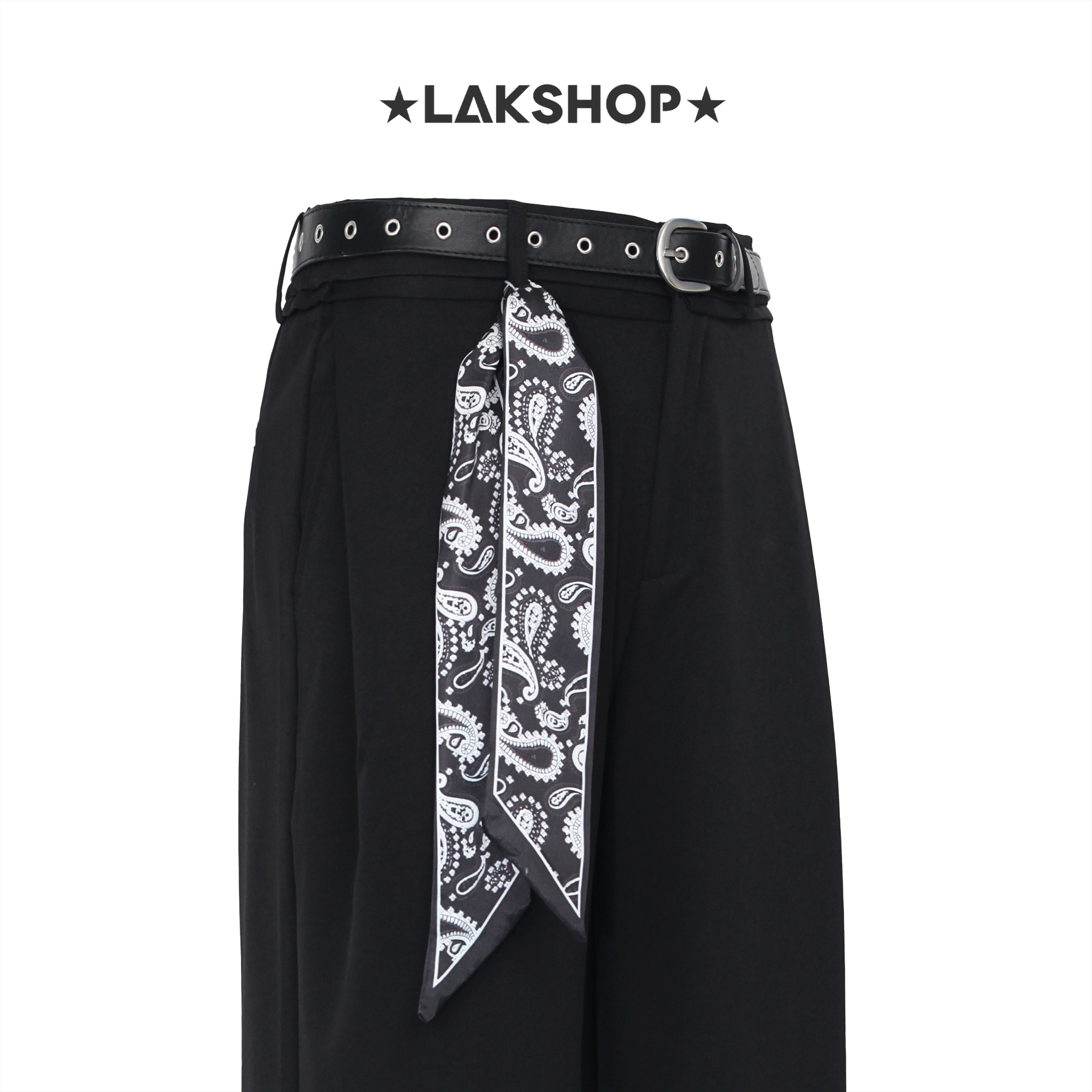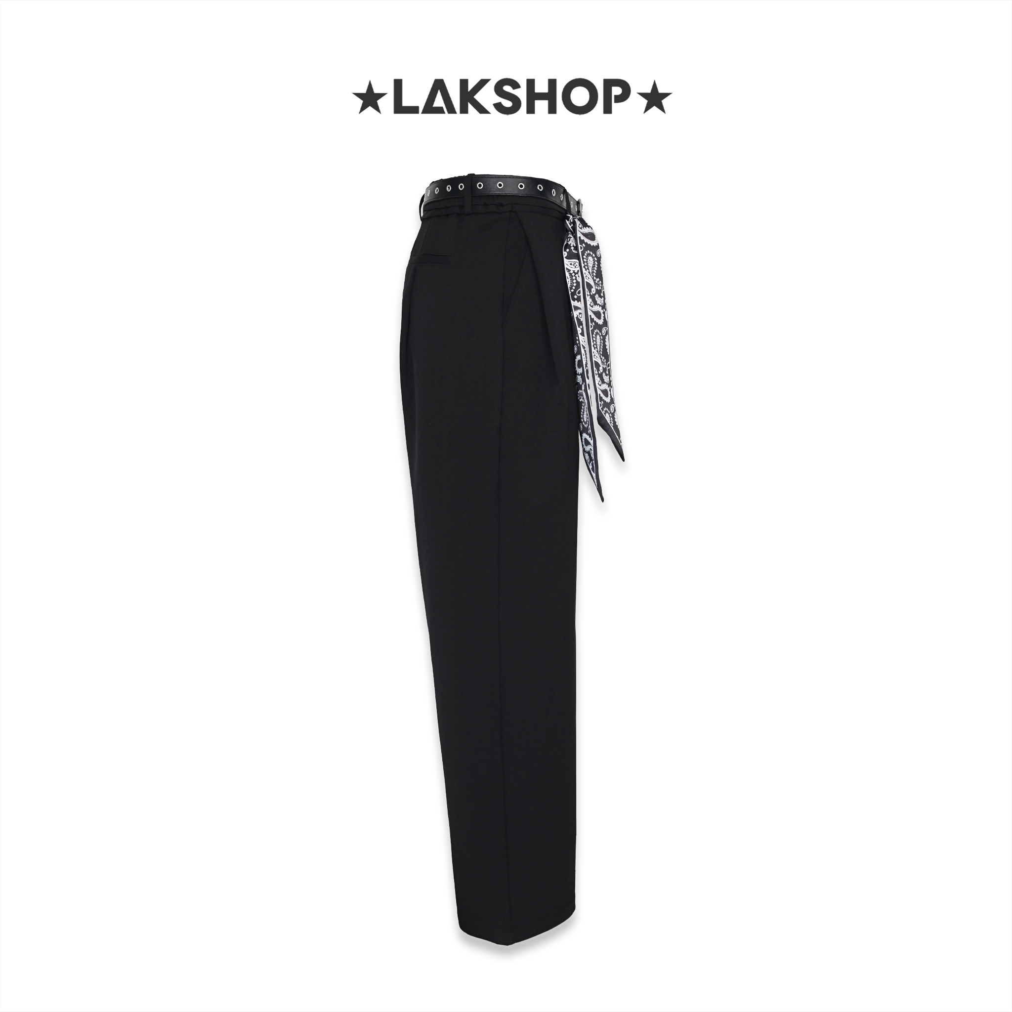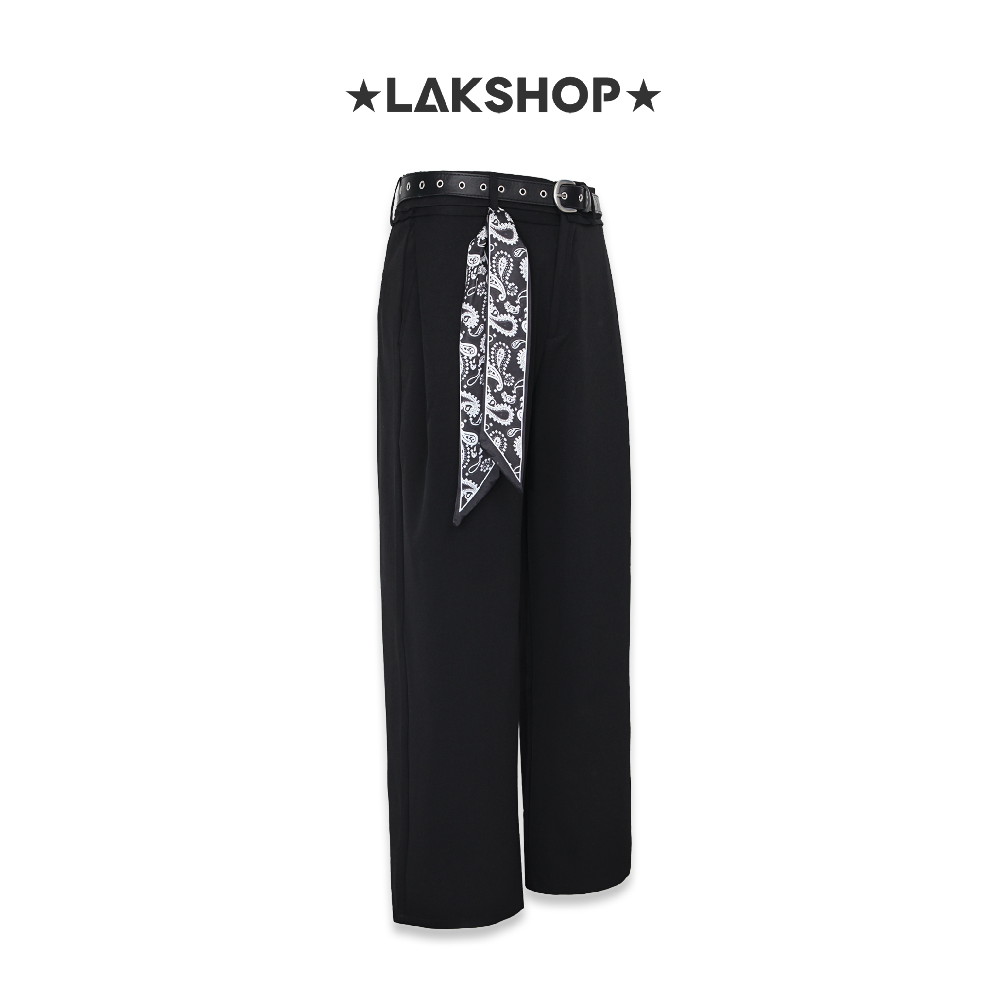 Quần Black Wide Leg Pants with Belt x Bandana