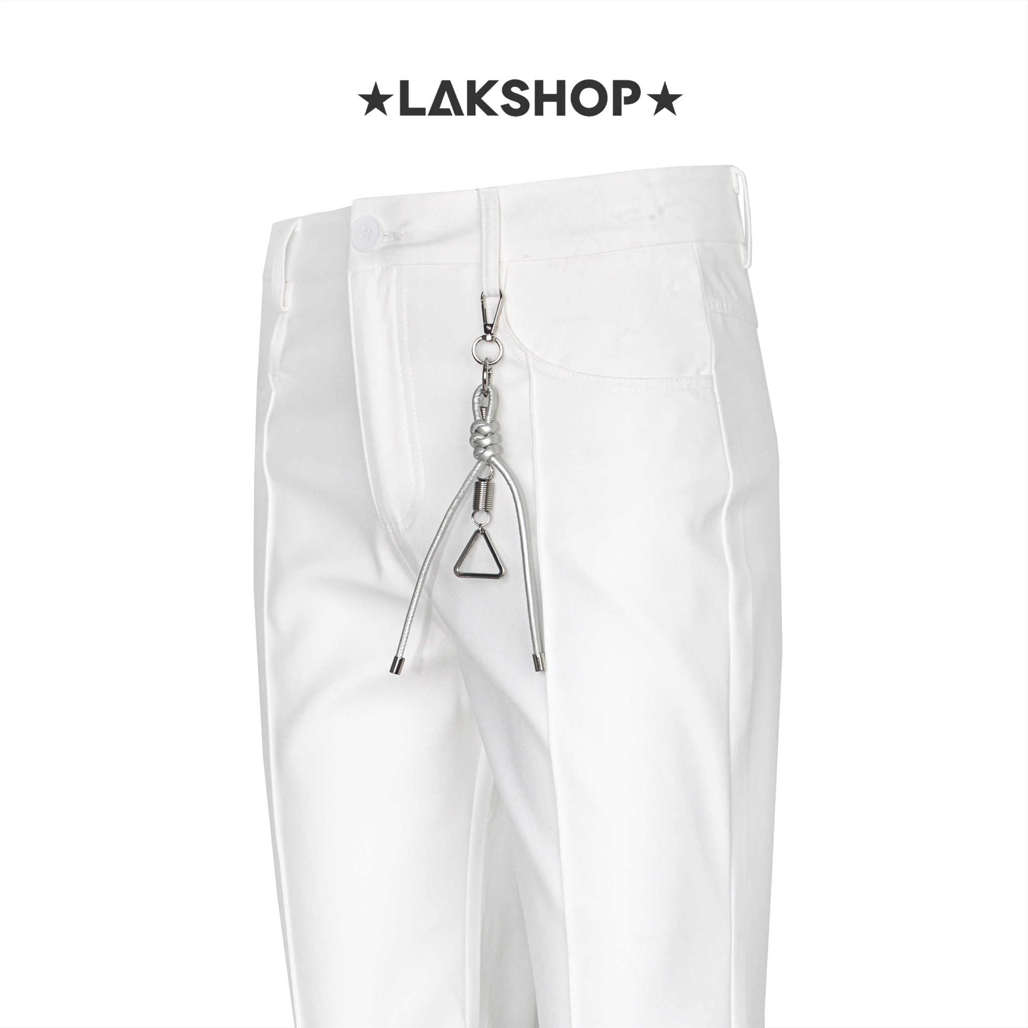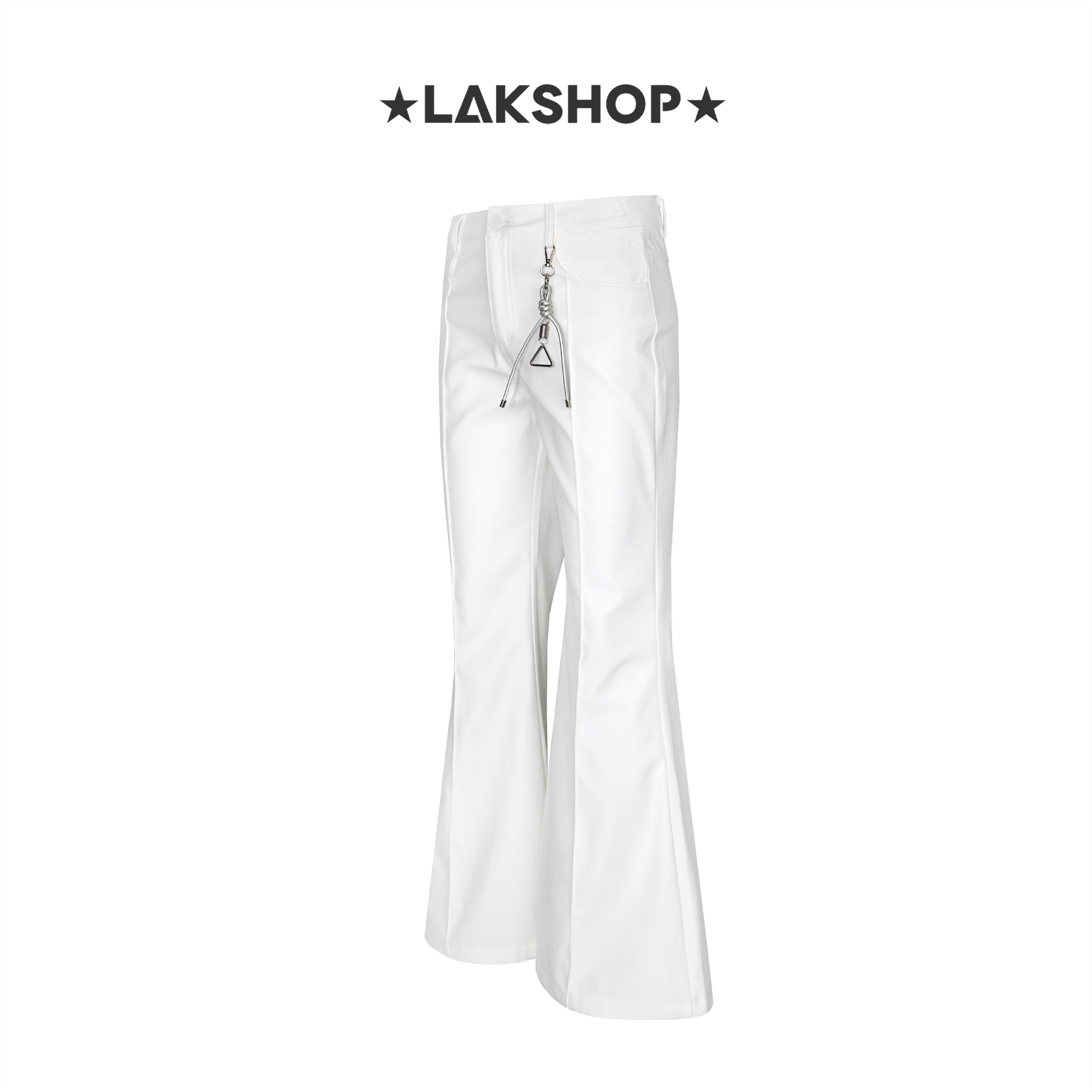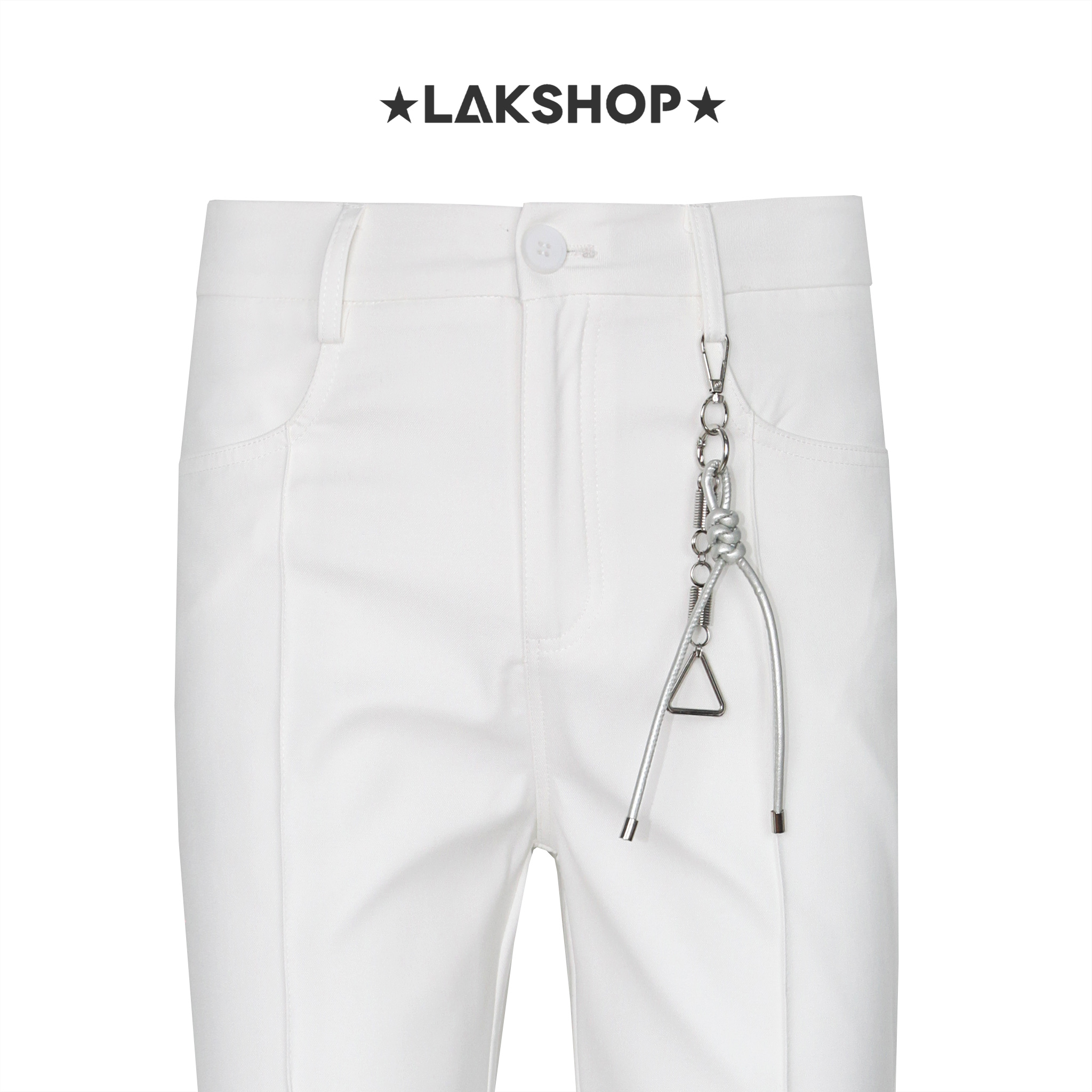 Quần White Pleat Flared Pants with Keychain