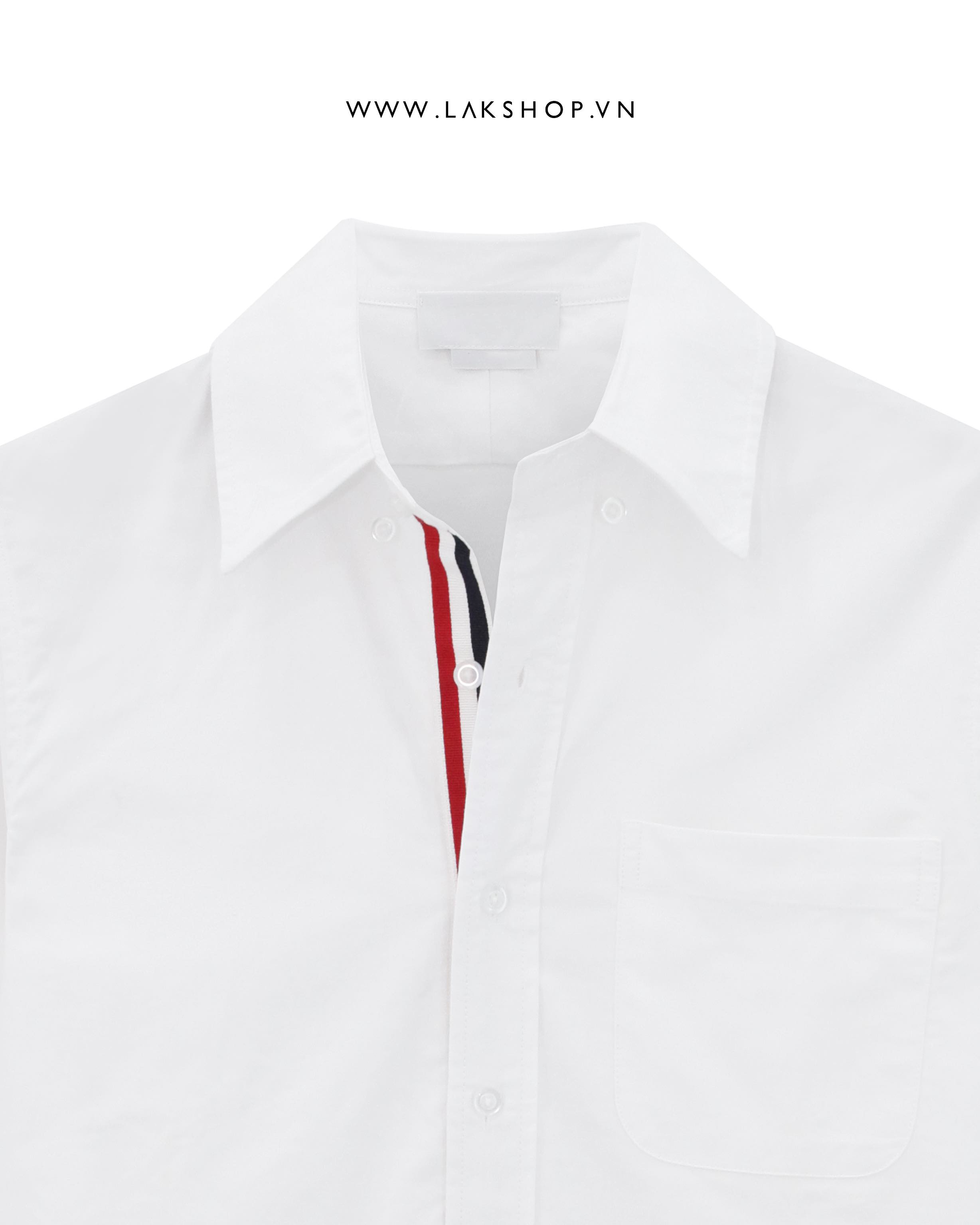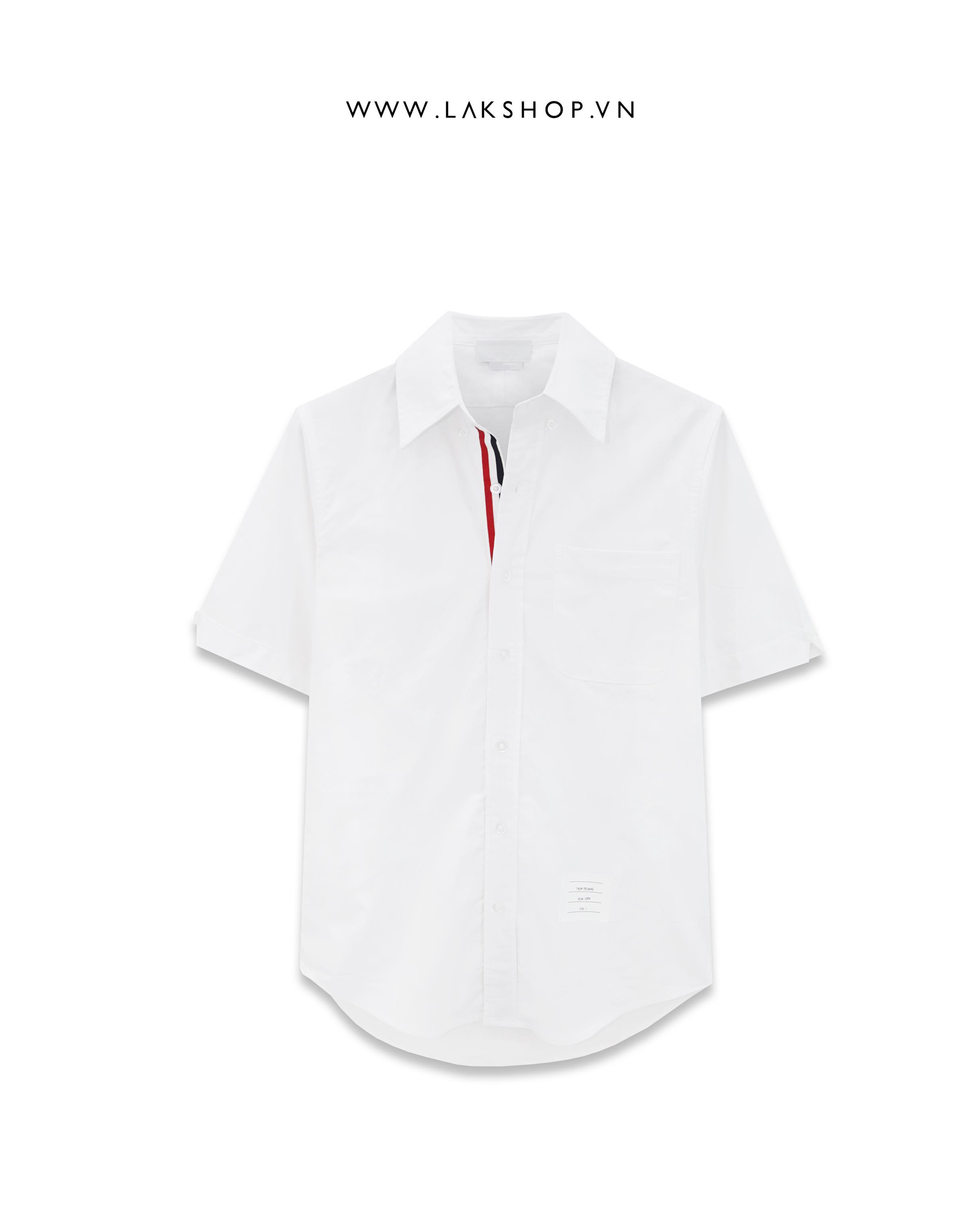 Áo TB White Cotton Oxford Grosgrain Placket Short Sleeve Shirt